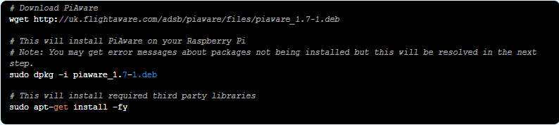 If you are running an inexpensive Raspberry Pi ADS-B receiver with dump1090 then you can install the PiAware Package from FlightAware to freely view nearby flight traffic and transmit this data to FlightAware’s tracking network. Most aircraft within Europe by 2017 and USA by 2020 will be required to have ADS-B transmitters onboard.