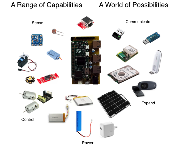 - Real Time Clock with repeating alarm keeps track of time when the Pi is off and schedule times to start the Pi (great for remote time lapse photography).