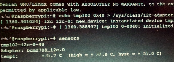 After installation we can now use the modprobe i2c-tools.Run "i2cdetect" to check whether TMP102 is connected.