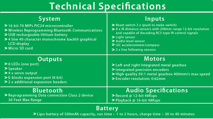 The Formula AllCode includes a powerful 16 bit processor and a Bluetooth module. The processor is pre-programmed with a full API (Application Programming Interface) that allows you to control the robot buggy using Bluetooth.
